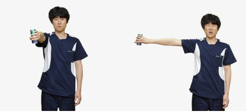 - 손으로 페트병이나 콜라캔을 잡은 다음 엄지손가락이 땅 쪽을 가리키게끔 팔을 안쪽으로 회전시킨 채로 팔을 어깨 위로 힘껏 들어 올려 보는 방법입니다. 어깨의 통증이 심해지거나 들어 올릴 수가 없는 경우에는 회전근개파열을 의심해 볼 수 있습니다.